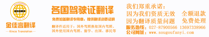 金佳言武漢駕照翻譯公司服務(wù)熱線:027-87900566 13697338966 微信:13697338966